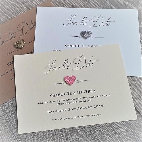 Glitter Heart Personalised Wedding Place Cards Pre Printed With