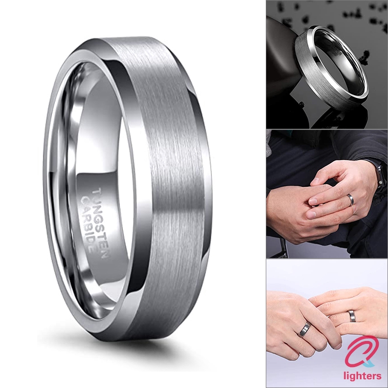 Tungsten Carbide Engagement Ring Brushed Beveled Edge Polished