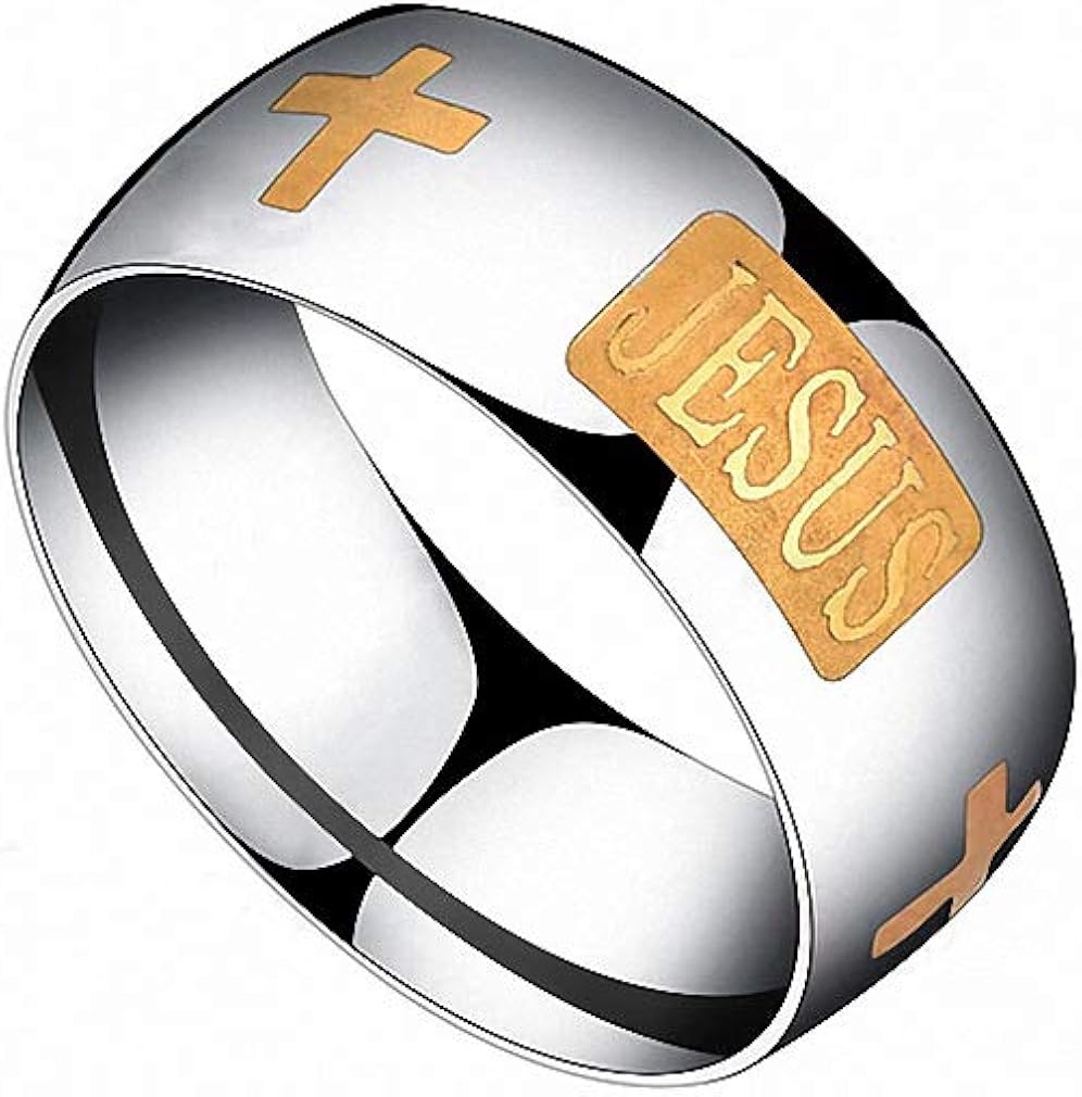 Elsemode 8mm Titanium Steel Christian Jesus Letter Prayer Ring