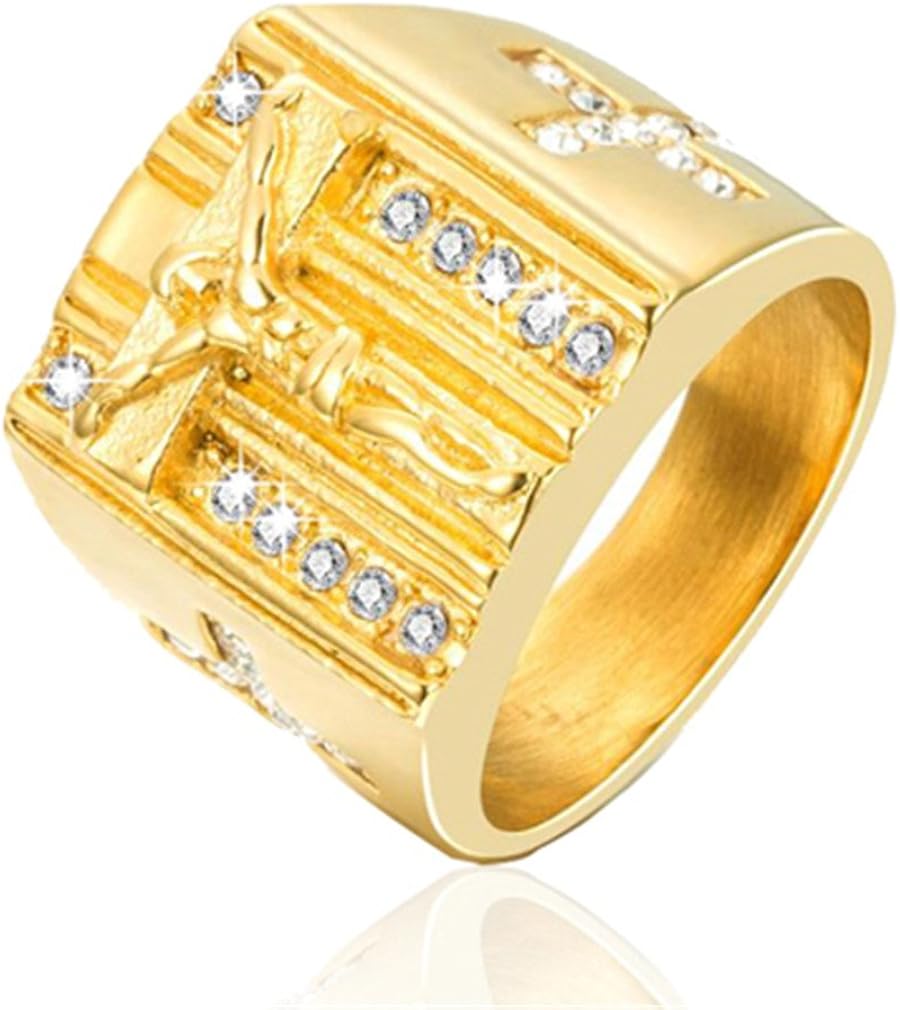 Beeido 24k Gold Hip Hop Holy Cross Signet Ring Prayer Christian