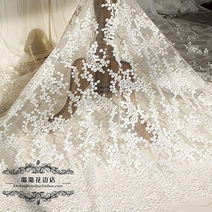 Amazon Com Off White Bridal Dress Lace Fabric Corded Embroidery